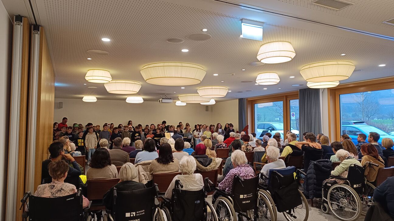 Die Schülerinnen und Schüler der 5. und 6. Klasse sangen am letzten Schultag vor den Weihnachtsferien ihr traditionelles Weihnachtskonzert im Alterszentrum Chriesigarten. Wie jedes Jahr probte der Chor während der Musikstunden und bereitete sich intensiv auf diesen Auftritt vor. Die Kinder machten während dem Konzert die Ansagen, einige musizierten mit ihrem eigenen Instrument und ganz viel sangen alle Kinder, sogar inklusive einzelner Solistinnen und Solisten. Der Applaus war riesig und es wurde nach einer Zugabe verlangt. Eine Bewohnerin erklärte hinterher, dass sie gerne für eine Standing Ovation aufgestanden wäre, wenn sie gekonnt hätte. So war dieses Konzert einmal mehr ein gelungener Anlass, der Generationen verbindet - wie spätestens beim gemeinsamen Singen von "Stille Nacht, Heilige Nacht" deutlich hörbar wurde.