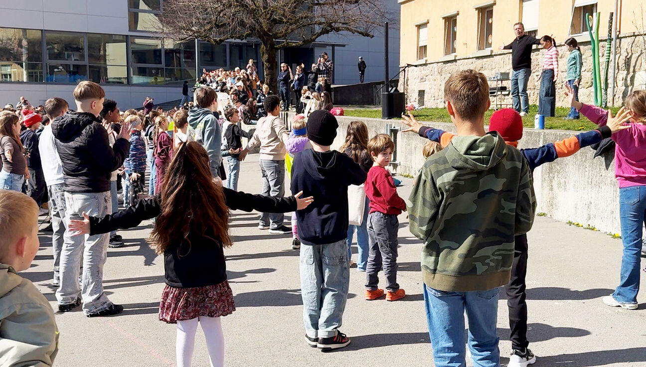 Ein besonderer Bestandteil des Morgens war das Einüben eines gemeinsamen Tanzes zum neuen Schulsong «ZämeWachse», der am Ende des Vormittags uraufgeführt wird. Zudem gestaltete jedes Kind ein persönliches Holzblatt, das bis zum Schuljahresende an einem grossen Gemeinschaftsbaum angebracht werden wird – ein sichtbares Zeichen für Zusammenhalt und Zugehörigkeit.