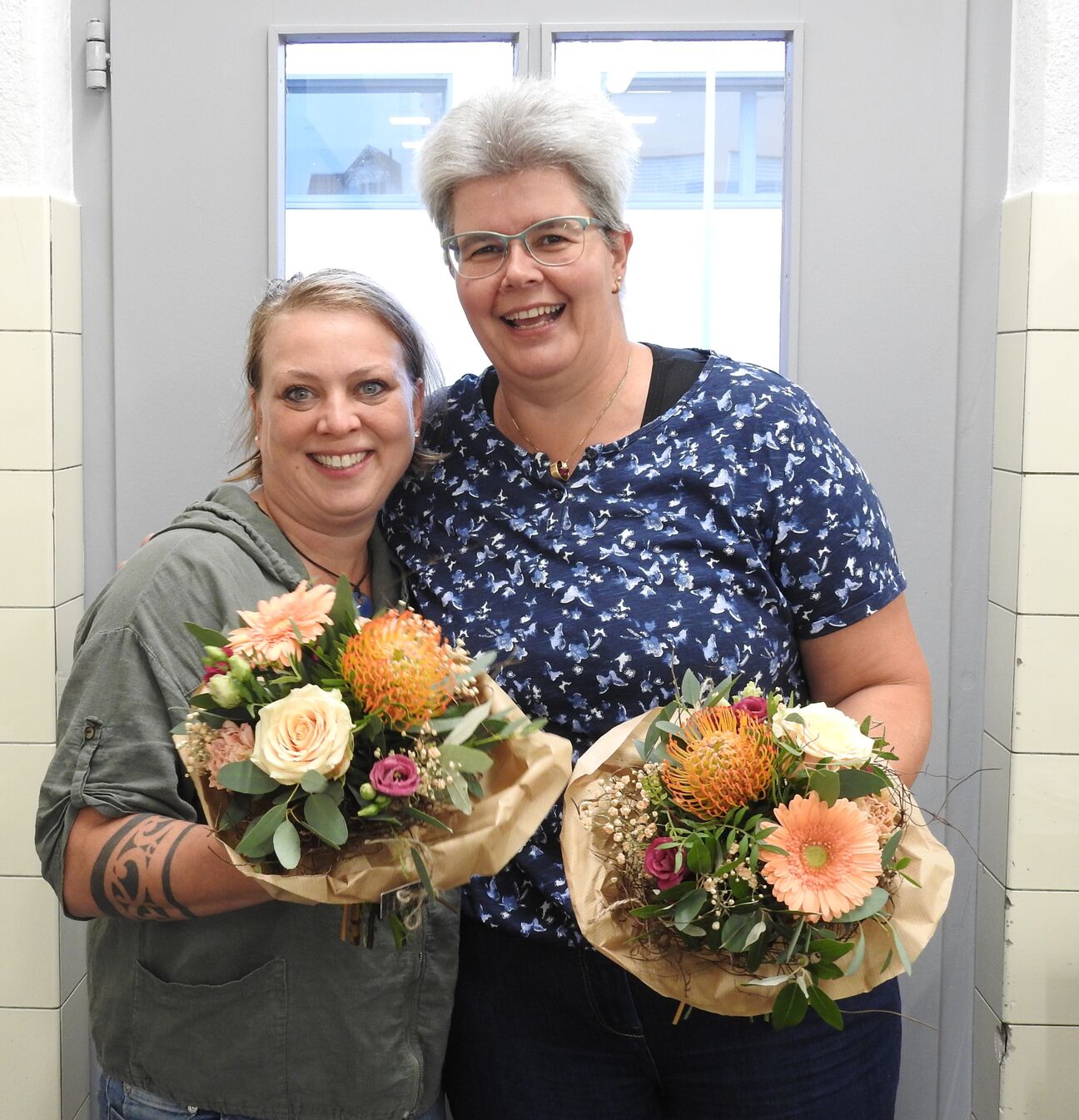 Seit viereinhalb Jahren sorgen unsere beiden Köchinnen Tiziana von Arx und Anita Annen für feine Menüs. Mit viel Engagement, Freude und Enthusiasmus haben sie bereits 50'000 Mahlzeiten auf die Teller gezaubert – eine beeindruckende Zahl. Dieser besondere Meilenstein wurde mit Blumen und wohlwollenden Dankesworten von der Leitung SEB gewürdigt.
