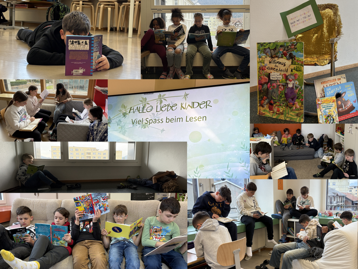 In der Woche vom 10.-14. März 2025 fand an den Gemeindeschulen Arth-Goldau das beliebte Leseprojekt «Tür auf - Buch auf» statt. Dabei öffneten sich jeden Tag beim Erklingen eines Liedes die Schulzimmertüren und luden Gross und Klein zum Lesen ein. In diesen 25 Minuten suchten sich die Kinder mit ihrem Buch einen geeigneten und gemütlichen Leseplatz und vertieften sich sogleich in ihre persönliche Lektüre.